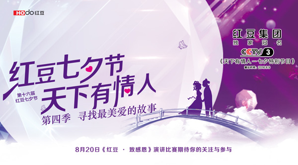 8月28日七夕當(dāng)晚19:30,由紅豆集團獨家冠名的中央電視臺綜藝頻道2017年七夕特別節(jié)目《紅豆七夕節(jié) 天下有情人》正式播出。