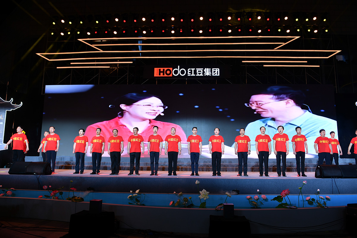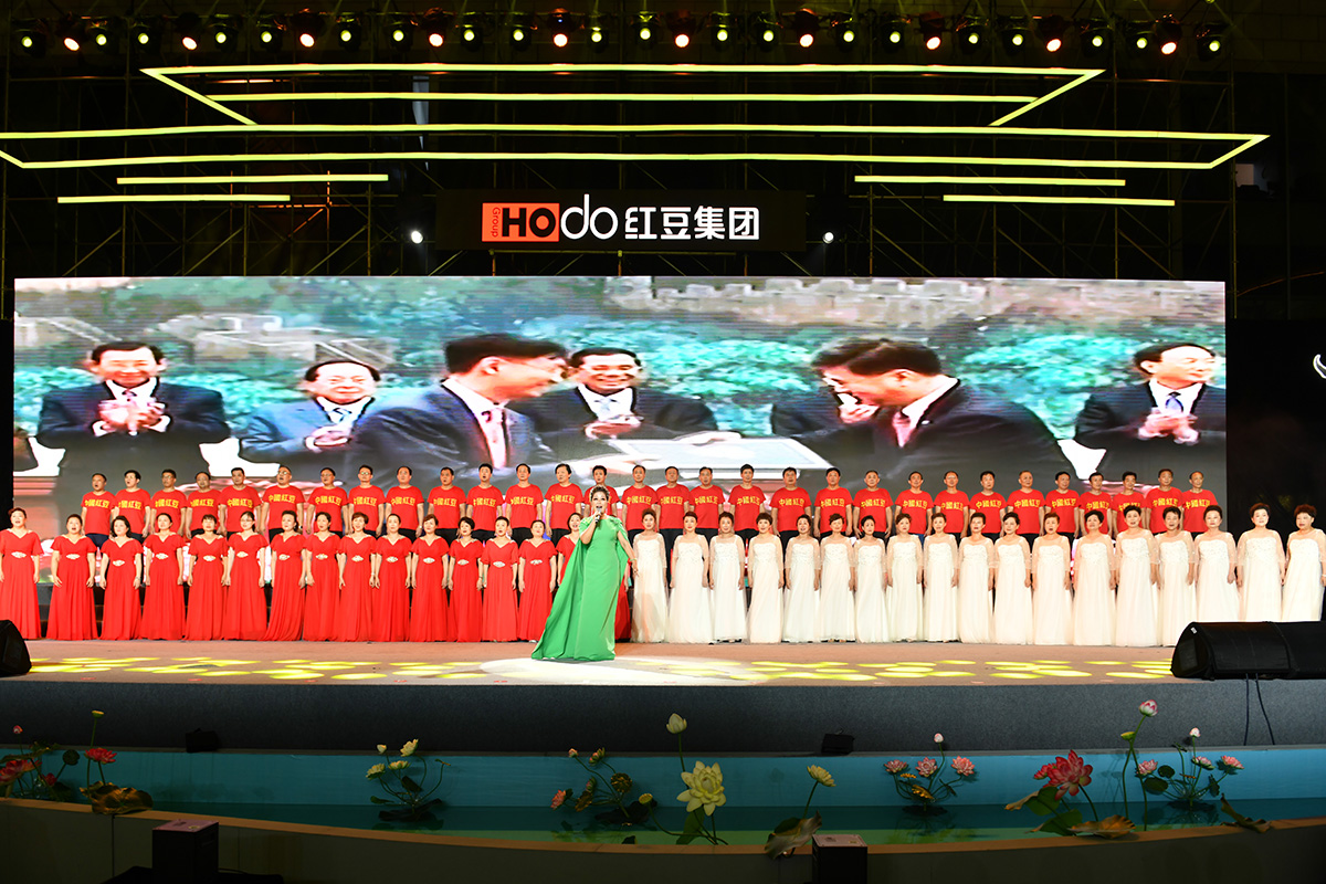 隨著音樂緩緩響起,扮演成“牛郎”和“織女”的男女舞蹈演員,在臺上翩然起舞,演繹著神話傳說中的“愛情故事”,晚會就在這支歌舞《七夕,我們的節(jié)日》中拉開了序幕。據(jù)悉,為打響企業(yè)文化優(yōu)質(zhì)品牌,弘揚積極向上的紅豆勵志精神和拼搏精神,紅豆集團特別邀請了全國及全省內(nèi)外有非凡影響力和創(chuàng)作能力的詞作家、曲作家、音樂家來紅豆采風(fēng),精心創(chuàng)作了一組《紅豆組歌》。晚會上,觀眾們首次欣賞到了《紅豆組歌》的所有原創(chuàng)歌曲。