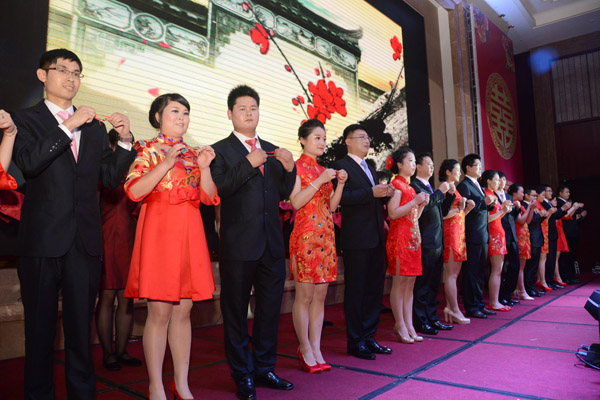 在紅豆,有著無(wú)數(shù)個(gè)這樣的故事等待我們挖掘。這些紅豆人因?yàn)榧t豆情文化而扎根企業(yè),從而也吸引更多的人選擇在紅豆扎根。紅豆是有形的情,在紅豆,每個(gè)員工都會(huì)感受到家庭溫暖。此次紅豆樹(shù)下的婚禮,紅豆為紅豆員工打造美輪美奐的婚禮,精心安排各種獨(dú)具紅豆特色的環(huán)節(jié)。鵲橋相會(huì)、恩愛(ài)宣誓、紅豆樹(shù)下鎖同心、新人共放荷花燈,紅豆情緣等等系列戶外儀式,演繹著新人相識(shí)相戀相愛(ài)的浪漫故事。紅豆集團(tuán)還為新人們送上紅豆緣定制首飾、定制旗袍、紅豆形象男裝等具有濃厚中國(guó)風(fēng)的新婚賀禮,共邀新人的親朋好友參加這場(chǎng)最浪漫的新中式集體婚禮,以紅豆之名見(jiàn)證最美的愛(ài)情。