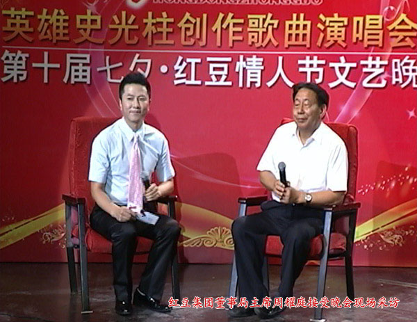 那么是誰將“紅豆”的相思內(nèi)涵進(jìn)一步延伸,從思念情人、思念親人升華到了思念故鄉(xiāng)、思念祖國,并升華為民族的大愛!“這些都與一個(gè)人有關(guān),而且為了弘揚(yáng)七夕這個(gè)傳統(tǒng)節(jié)日,他在2001年就率領(lǐng)他的企業(yè)在全國第一個(gè)舉起弘揚(yáng)七夕情人節(jié)的大旗,十載耕耘,十年堅(jiān)守,從最初的‘曲高和寡’,到應(yīng)者云集,再到如今的全民節(jié)日,他用行動詮釋了現(xiàn)代版愚公移山的故事?!敝鞒秩藥еF(xiàn)場觀眾們疑惑的目光,走下舞臺來到紅豆集團(tuán)董事局主席周耀庭身邊,“他就是周耀庭先生!”主持人的話音剛落,觀眾們連連鼓掌。在談到舉辦七夕紅豆·相思節(jié)的初衷時(shí),周耀庭回答說:“我們之所以舉辦這個(gè)活動是想告訴人們,我們有自己民族的情人節(jié),這個(gè)節(jié)日已經(jīng)有2780年了,是世界上最早的愛情節(jié)日。通過10年的努力,值得我們欣慰的是,中華兒女都開始過七夕節(jié),并且七夕節(jié)在今年被中宣部、中央文明辦等七部委列為‘我們的節(jié)日’,七夕的復(fù)蘇就是對我們十年付出,十年堅(jiān)守的最大肯定。我們計(jì)劃通過三個(gè)10年,第一個(gè)十年,紅動中國,第二個(gè)十年走向世界,第三個(gè)十年,紅動全球,最多五個(gè)十年一定能實(shí)現(xiàn)?!彼幕卮鹪俅我l(fā)全場熱烈的掌聲。