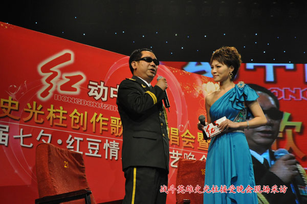 “江中有你的小溪,江中有我的河,江中有你人生的一段跋涉,在那激情演繹的歲月,你像陽光走進(jìn)天地,走進(jìn)我生活……”歌曲《江戀》的旋律剛一響起,整個(gè)劇場內(nèi)爆發(fā)出雷鳴般的掌聲。“這首歌是史光柱為歌頌愛情,為我們紅豆集團(tuán)寫的歌。”李先生一邊鼓掌,一邊說道。如果沒有1984年的那場戰(zhàn)爭,這個(gè)世界將會少一位英雄;如果沒有那場戰(zhàn)爭,這個(gè)世界就會多一雙明亮的眼睛。史光柱,這個(gè)響亮的名字,在上個(gè)世紀(jì)八十年代感動和影響了整整一代人。戰(zhàn)傷后,他從雙目失明的陰影中走出,拿起筆桿,在文藝的陣地繼續(xù)攻關(guān)拔礙、沖鋒陷陣,譜寫了一首首紅色經(jīng)典和一個(gè)個(gè)史光柱傳奇。據(jù)悉,當(dāng)天整場晚會共16首歌曲全部是由史光柱創(chuàng)作而成,其中《江戀》、《紅豆》和《青春木棉》三首歌曲是他專門為紅豆集團(tuán)創(chuàng)作的?!笆氛@么多年來,究竟是什么力量讓您始終飽含創(chuàng)作的激情?”晚會上,主持人的問題代表了所有人心中的疑問?!白鎳?、大愛、崇高的理想一直都在我心中,是它們激勵(lì)著我克服了重重困難,我想說的是,崇高讓我高尚,崇高讓我內(nèi)心充滿陽光?!笔饭庵幕卮鹨矛F(xiàn)場觀眾連連贊嘆,將晚會推向了一個(gè)小高潮。男生獨(dú)唱、女生獨(dú)唱、男女對唱、歌伴舞,一首首紅色經(jīng)典不僅激發(fā)起觀眾們對于愛情的美好聯(lián)想,而且引起了他們對故鄉(xiāng)、祖國的思念。