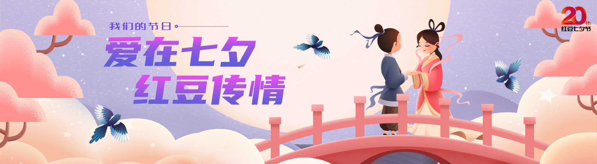 ? ? ? ? 從2001年紅豆集團首次推出自己的品牌節(jié)日——紅豆七夕節(jié),“情文化”始終是紅豆七夕節(jié)的主基調(diào),此后,歷年來都在為打造中國情人節(jié)而努力,至今已走過二十年。二十為“廿”!紅豆集團始終致力于傳承與弘揚七夕文化,撣去覆蓋其上的厚重積塵,回歸節(jié)日的精神本真;相思為“念”,紅豆集團始終不忘“讓古老的七夕節(jié)重回當(dāng)代中國人的生活,使文化自信落地生根”的諾言,身體力行的倡導(dǎo),使七夕節(jié)成為當(dāng)代“全城熱愛”的傳統(tǒng)佳節(jié)之一。這是讓所有紅豆人都感到欣喜的成果,也是紅豆送給所有紅粉們的一份禮物!