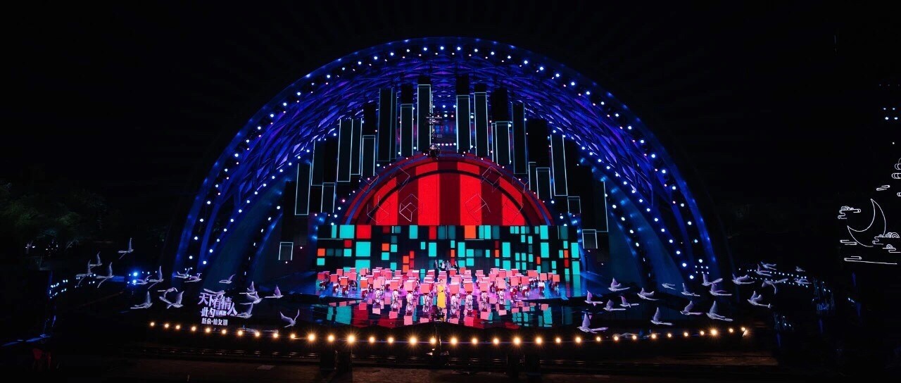 ? ? ? ? 從2016年首度合作至今,紅豆集團聯(lián)合央視推出七夕特別節(jié)目已經(jīng)走過了五個年頭,也是這臺晚會選擇戶外錄制的第四年。2016年,紅豆為央視中國情人節(jié)特別節(jié)目隆重代言,正式拉開同央視合作的帷幕,與“天下有情人”共度浪漫七夕。2017年,這臺七夕晚會首次走出演播室,進駐七仙女傳說之鄉(xiāng)江西新余,在旖旎的仙女湖畔搭建實景舞臺,在古典風(fēng)潮與現(xiàn)代技術(shù)融合中,來了一場精妙唯美的時空穿越之旅。2018年,晚會首次在南北兩個會場平行推進,南依然是江西新余仙女湖,北則選了有著深厚七夕節(jié)文化淵源的陜西西安昆明池,南方的溫柔婉約和北方的古樸大氣在七夕交相輝映;2019年于仙女湖畔描繪“七彩七夕”,鄰水而建的舞臺與水面倒影,形成水天一色的美景,盡顯古典風(fēng)韻。