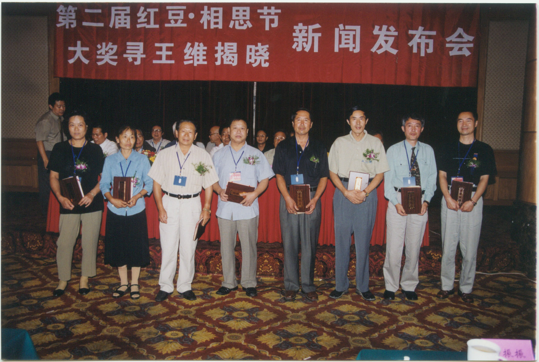 7月15日,“七夕紅豆·相思節(jié)詩(shī)詞大賽”歷經(jīng)三個(gè)半月截稿,據(jù)統(tǒng)計(jì)此次大賽共收到美、英、日、法、加拿大、新西蘭、泰國(guó)等十幾個(gè)國(guó)家和兩岸三地參賽稿件108000多篇,參賽者達(dá)到了31000多人。7月24日,臺(tái)灣著名詩(shī)人余光中欣然作《紅豆》詩(shī)一首,并電傳到紅豆集團(tuán)。7月25日,大賽組委會(huì)把進(jìn)入復(fù)評(píng)的隱名稿件送往北京,由大賽評(píng)委會(huì)進(jìn)行復(fù)評(píng)、終評(píng)。7月30日,大賽評(píng)委會(huì)經(jīng)過反復(fù)評(píng)審、打分后,評(píng)出所有“七夕紅豆·相思節(jié)詩(shī)詞大賽”獲獎(jiǎng)作品。 8月14日,“七夕紅豆·相思節(jié)詩(shī)詞大賽”(20萬(wàn)大獎(jiǎng)尋當(dāng)代王維)揭曉新聞發(fā)布會(huì)在無(wú)錫錦江大酒店舉行,來(lái)自北京的詩(shī)人劉征以一首古風(fēng)《紅豆曲》摘取了桂冠。紅豆集團(tuán)董事局主席周耀庭、著名詩(shī)人賀敬之、孫軼青、全國(guó)政協(xié)委員顧蔚慶等參加了這次發(fā)布會(huì),并給獲獎(jiǎng)?wù)哳C發(fā)了獲獎(jiǎng)證書與獎(jiǎng)金。