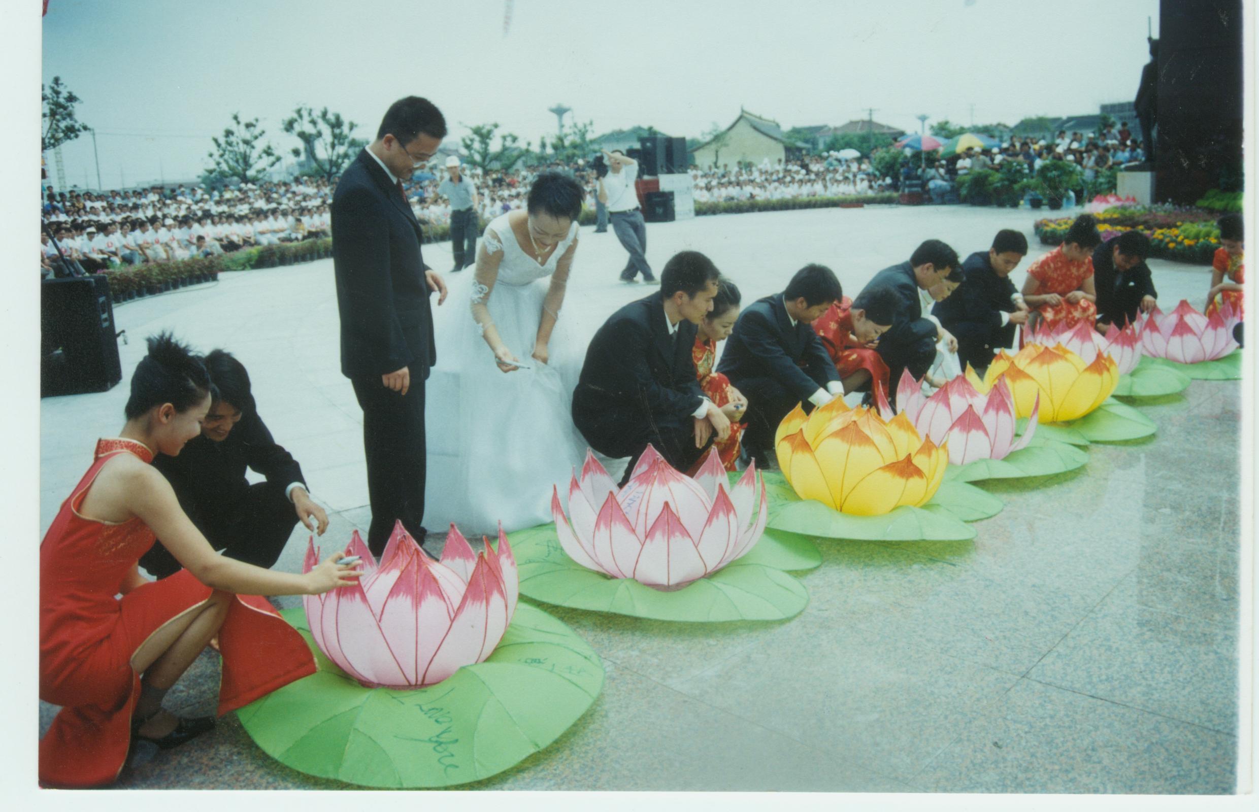 8月15日上午(七夕當(dāng)天),臺(tái)灣的七對(duì)情侶相會(huì)無(wú)錫,他們中年齡最大的夫婦,先生77歲,太太65歲。臺(tái)灣的情侶與無(wú)錫的情侶們一起學(xué)習(xí)制作河燈,并坐在“古運(yùn)河”號(hào)游船上,一起邊放河燈,邊交談,共敘同宗同族的相思之情,紅豆集團(tuán)董事局主席周耀庭向他們贈(zèng)送了象征吉祥、美好、相思和愛的紅豆。在千年紅豆樹下,鳳凰衛(wèi)視的著名主持人吳小莉闡述了她對(duì)親情、友情、愛情、同胞之情的獨(dú)到見解。臺(tái)灣詩(shī)人余光中則在當(dāng)天下午,來(lái)到無(wú)錫“天下第二泉”,暢談中華民族的傳統(tǒng)文化,并參觀了紅豆集團(tuán),為七夕紅豆·相思節(jié)題詞:一粒紅豆,千年因緣。