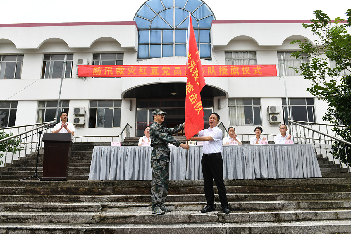 黨有號(hào)召,紅豆必應(yīng);國有需要,紅豆必有為。7月19日,紅豆黨委第一時(shí)間組織學(xué)習(xí)了中央組織部文件,并作出了成立防汛救災(zāi)黨員突擊隊(duì)的決定。7月20日,紅豆集團(tuán)人武部第一時(shí)間舉行防汛救災(zāi)黨員突擊隊(duì)授旗儀式,集團(tuán)黨委書記周海江向突擊隊(duì)授旗,100名黨員突擊隊(duì)向黨旗莊嚴(yán)宣誓。