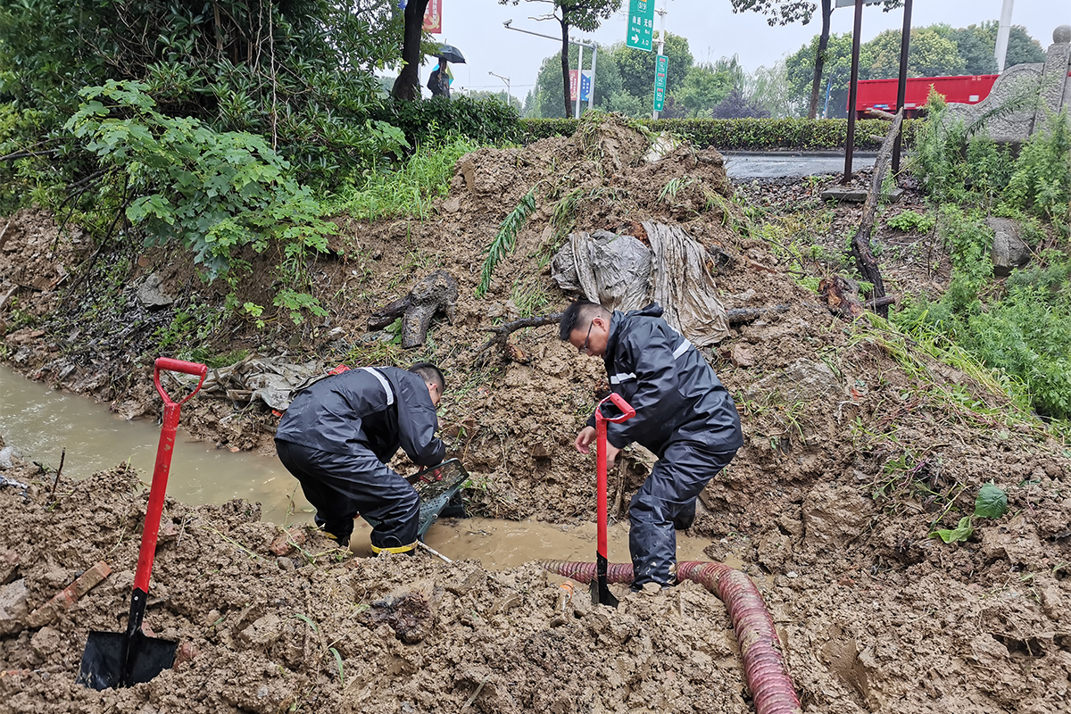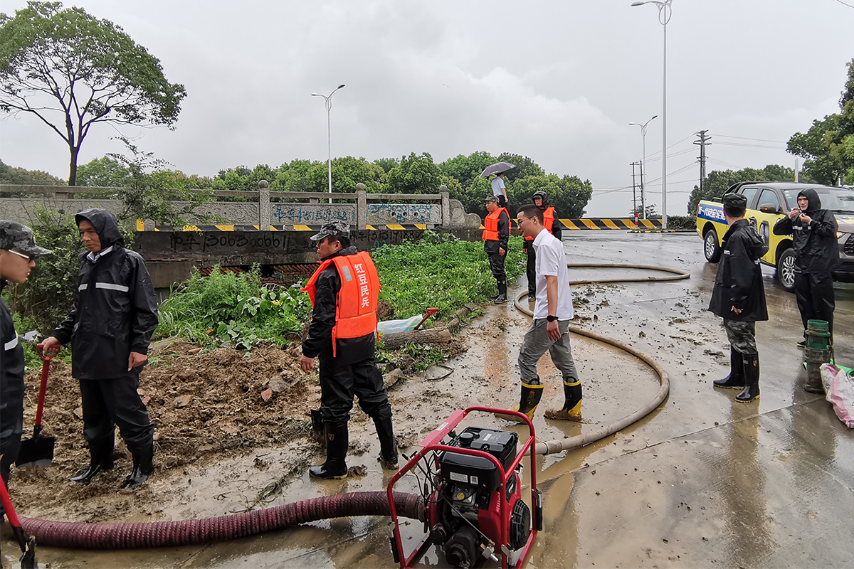 儀式之后,黨員突擊隊(duì)成員即刻前往村企統(tǒng)籌共建對(duì)象——山聯(lián)村,參加防汛救災(zāi)工作。該村唐家巷和一金屬制品廠發(fā)生嚴(yán)重內(nèi)澇,圍墻外圍積水一米多,突擊隊(duì)員迅速投入“戰(zhàn)斗”,裝沙袋、抽積水,經(jīng)過半個(gè)多小時(shí)的奮戰(zhàn),廠里內(nèi)澇解除。