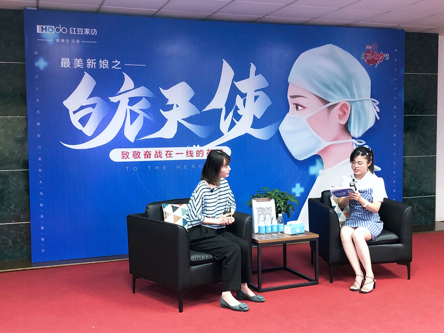在籌備晚會(huì)的同時(shí),紅豆·“尋找最美愛(ài)情故事”紅豆·“尋找最美愛(ài)情故事”、紅豆男裝· 尋找“Mr.Real”、紅豆家紡·尋找“最美新娘之最美白衣天使”、通用股份·尋找中國(guó)好司機(jī)等尋找“XX” 系列活動(dòng)都在火熱進(jìn)行中。系列活動(dòng)是紅豆情文化的展現(xiàn),建立了紅豆七夕節(jié)“美好”“溫情”的品牌認(rèn)知,延續(xù)了活動(dòng)的品牌聯(lián)想。8月7日,紅豆家紡根據(jù)投票數(shù)、評(píng)論數(shù)、瀏覽量、事跡評(píng)選出一、二、三等獎(jiǎng)最美新娘,進(jìn)行了直播訪談。一等獎(jiǎng)獲得者也就是最美新娘白衣天使代表的侯慕蓉,是常熟市第二人民醫(yī)院的急危重癥科的護(hù)士,也是無(wú)錫支援湖北醫(yī)療隊(duì)的一員,2月9日,侯慕蓉第一時(shí)間主動(dòng)報(bào)名參加江蘇醫(yī)療隊(duì)支援武漢。援鄂期間,因高負(fù)荷的工作量和極大的心理壓力,侯慕容每晚只能通過(guò)安眠藥入睡,直播訪談中她表示:回家后最開(kāi)心的事是能好好睡覺(jué)。對(duì)于白衣天使的稱(chēng)呼她有自己一點(diǎn)小小的見(jiàn)解——舍小家為大家,我們不是白衣天使,是白衣戰(zhàn)士!采訪結(jié)束,紅豆家紡授予這位白衣天使代表成為紅豆家紡健康睡眠首席體驗(yàn)官。