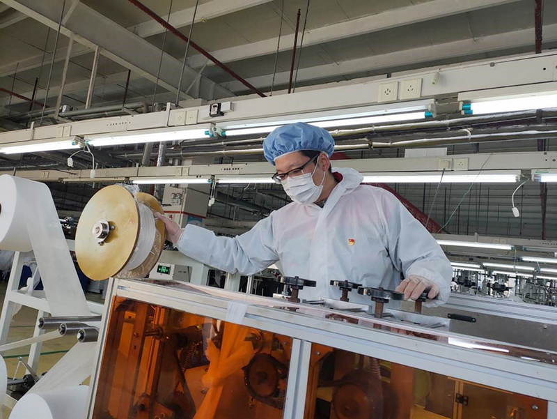 從口罩生產(chǎn)車間的轉(zhuǎn)型改造,到口罩生產(chǎn)設(shè)備的引進(jìn)、調(diào)試;從口罩原材料的購進(jìn),到生產(chǎn)員工的培訓(xùn)。紅豆人日夜奮戰(zhàn),黨員志愿者鮑敏、戴偉紅、孫燕、周剛、鞠婷、顧蔡衛(wèi)、顏軍、牛水霞、沈燕芳、鄔麗麗、李璟、王娜等白天做好本職工作,晚上加班加點(diǎn),無私奉獻(xiàn)。紅豆黨員突擊隊(duì)更是事事爭(zhēng)先,發(fā)揮“特別能吃苦、特別能戰(zhàn)斗”的奮斗精神,在關(guān)鍵時(shí)刻勇挑重?fù)?dān),沖鋒在前,彰顯先鋒模范作用。