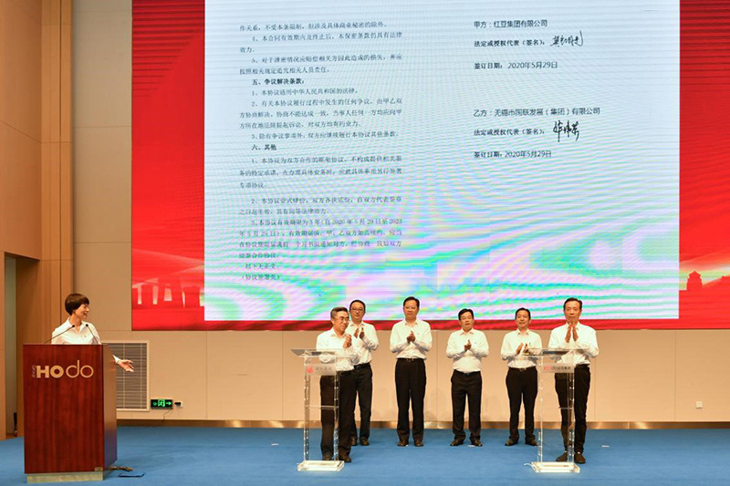 儀式上,紅豆集團(tuán)黨委書記周海江與國聯(lián)集團(tuán)黨委書記許可簽訂黨建結(jié)對(duì)共建協(xié)議,紅豆集團(tuán)董事局副主席龔新度與國聯(lián)集團(tuán)黨委副書記、總裁華偉榮簽訂戰(zhàn)略合作協(xié)議。