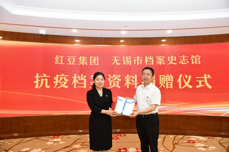 無錫市檔案史志館系統(tǒng)、深度、精準(zhǔn)地挖掘開發(fā)檔案史志資源,不斷提升新形勢(shì)下檔案史志工作水平,服務(wù)發(fā)展大局、服務(wù)社會(huì)民生,為無錫經(jīng)濟(jì)的高質(zhì)量發(fā)展作出了積極貢獻(xiàn)。紅豆集團(tuán)作為全國(guó)先進(jìn)基層黨組織,在疫情防控期間,凝聚強(qiáng)大力量,積極支持一線抗疫,勇?lián)?zé)任,為抗疫前線提供支持與保障。此次,雙方舉行檔案史料相互捐贈(zèng),既是對(duì)這場(chǎng)戰(zhàn)疫的永恒銘記,也是對(duì)這場(chǎng)人民抗疫戰(zhàn)爭(zhēng)的最好致敬。
